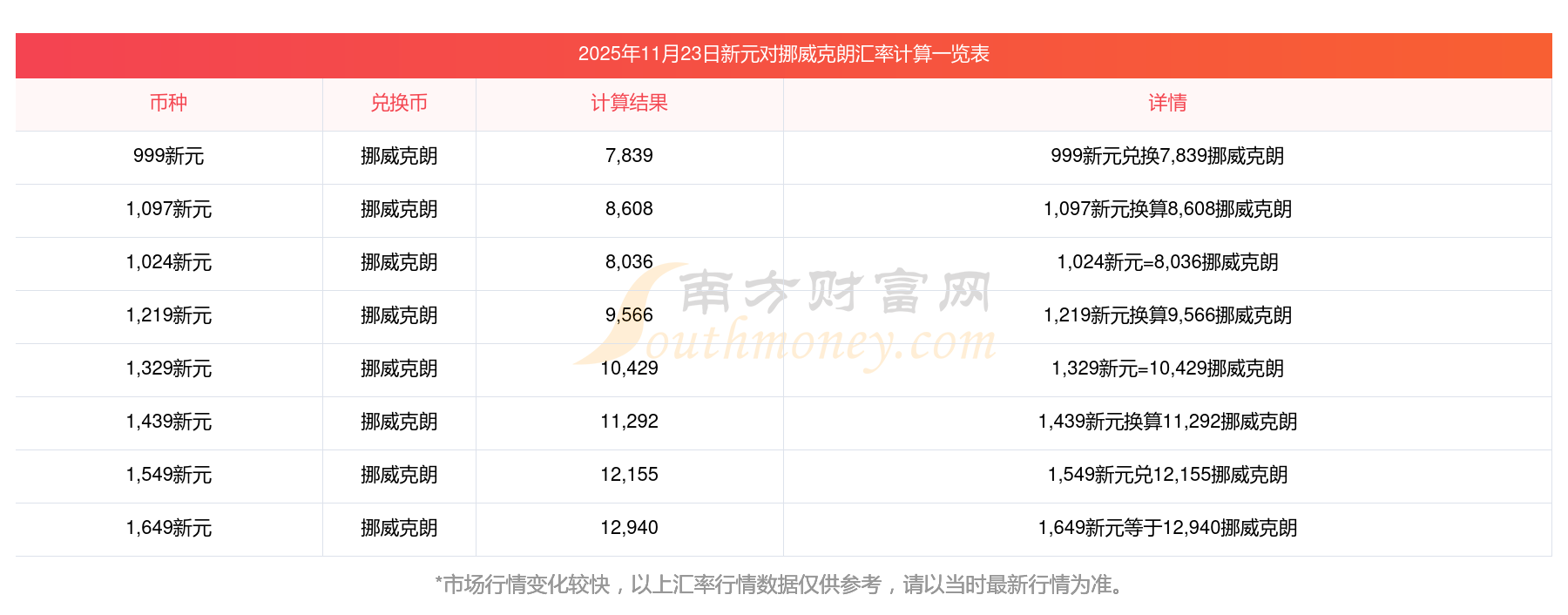 新元匯率 新元兌換挪威克朗行情一覽2025/11/23