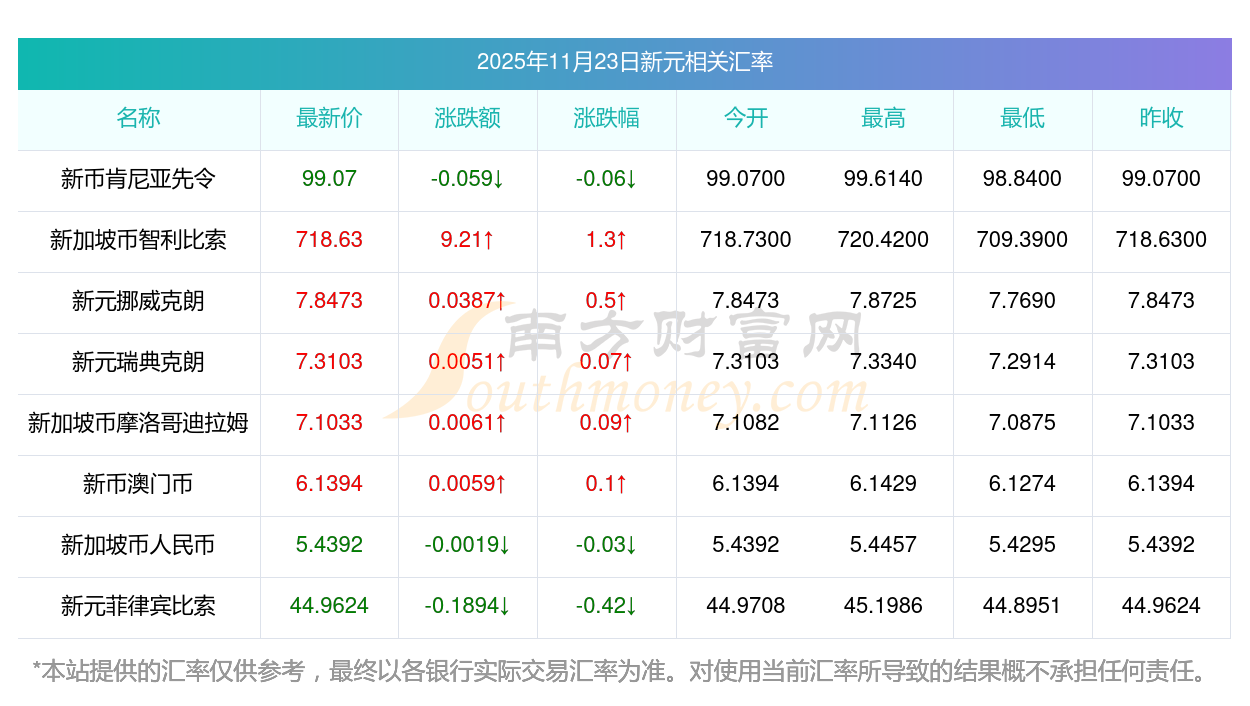 南方財富網(wǎng)為您提供新元對挪威克朗匯率最新價格詳情。