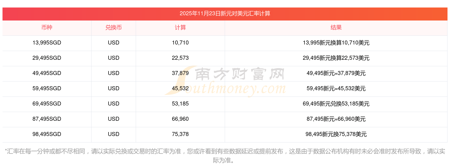 2025年11月23日匯率行情:14新元對美元匯率多少