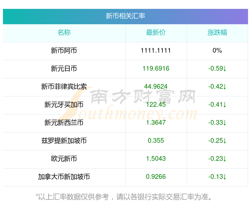 南方財(cái)富網(wǎng)為您提供新幣對(duì)剛幣匯率最新價(jià)格詳情。