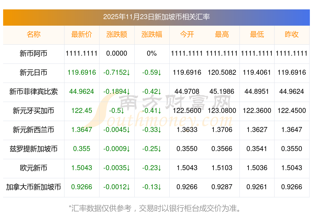 每日匯率查詢——新加坡幣對加元匯率調(diào)整2025-11-23