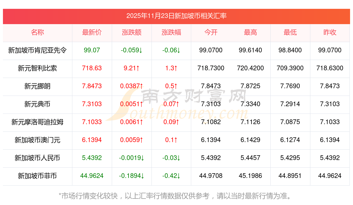 2025年11月23日新加坡幣相關(guān)匯率查詢