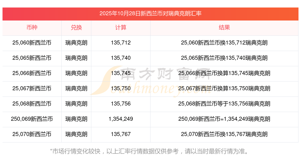 28新西蘭幣等于多少瑞典克朗2025年10月28日