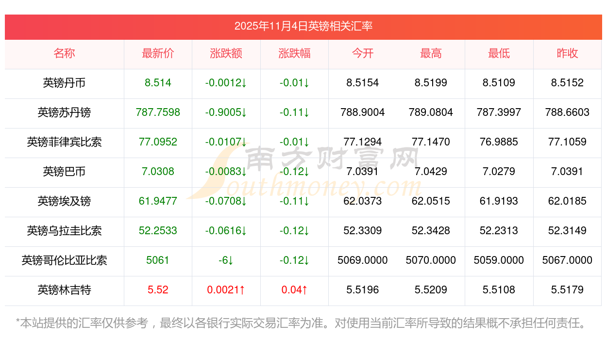 根據(jù)今天2025年11月4日匯率計算,GBP兌換PHP匯率最新價77.095200,今開價77.1294,昨收價77.1059,最高價77.1470,最低價76.9885。