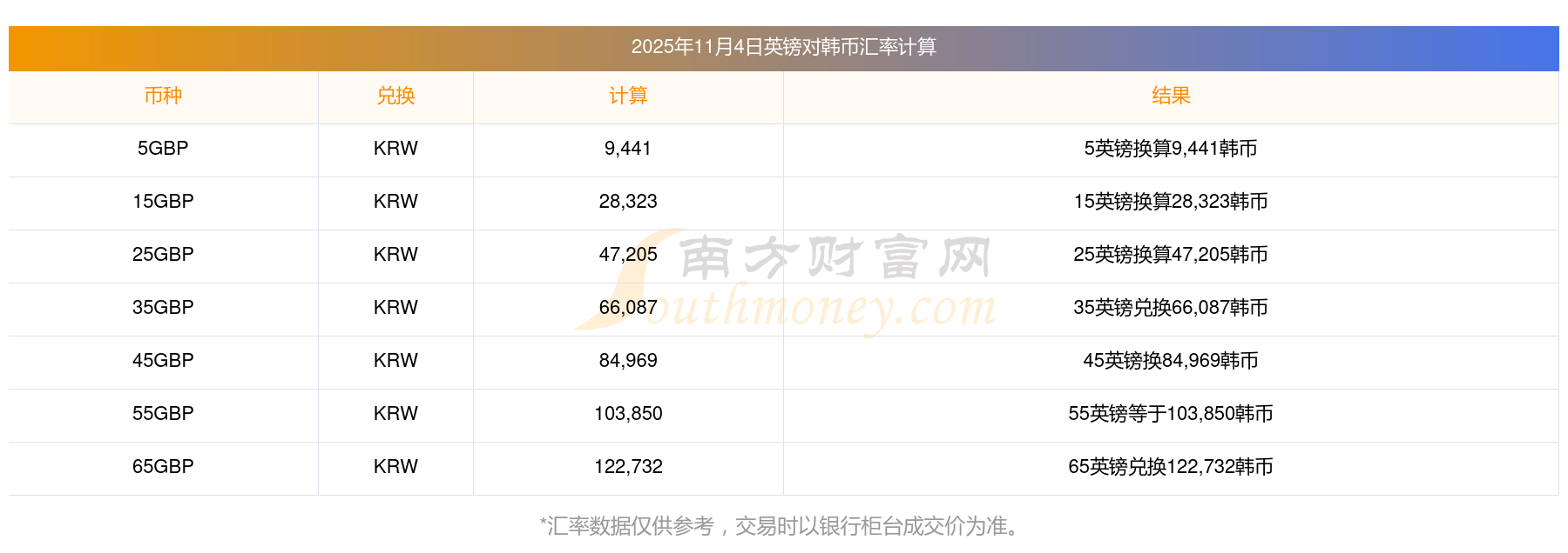 今天21兌換 | 將英鎊轉(zhuǎn)換為韓幣匯率多少? 2025年11月4日