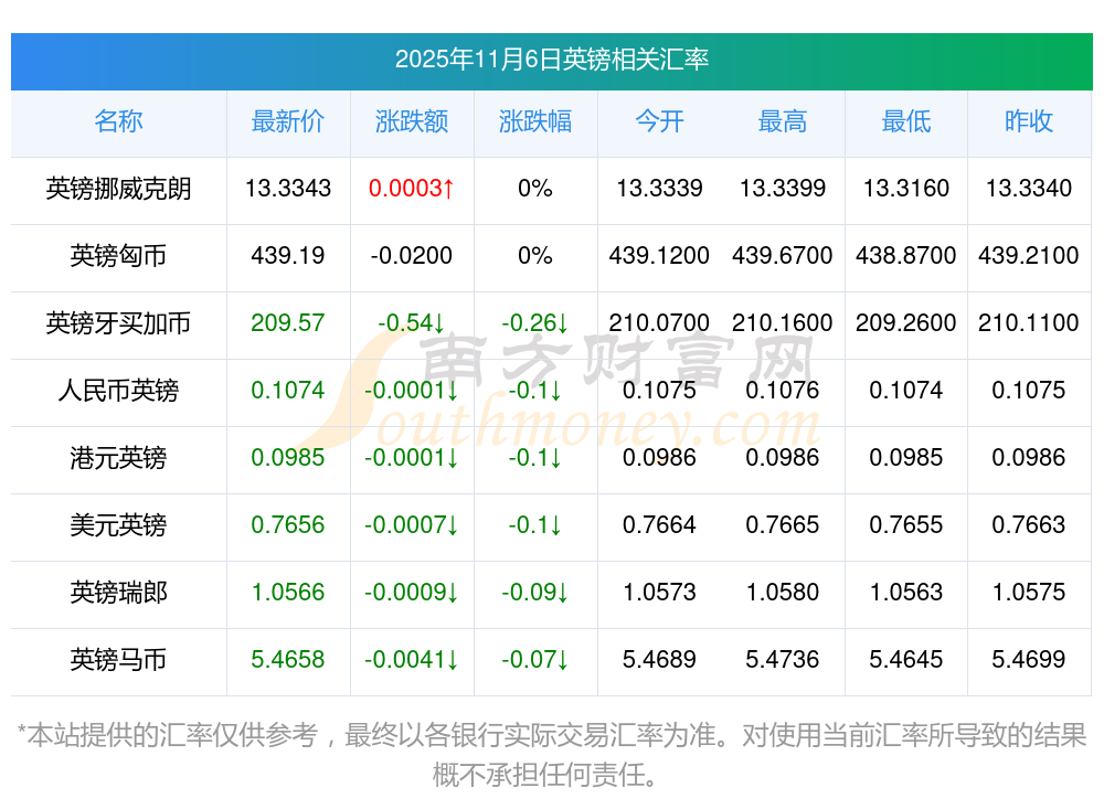 根據(jù)2025年11月6日匯率計(jì)算,GBP兌換HUF匯率最新價(jià)439.190000:今開價(jià)439.1200,昨收價(jià)439.2100,最高價(jià)439.6700,最低價(jià)438.8700。