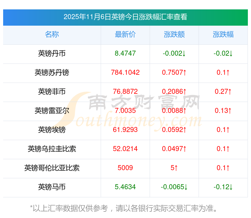 2025年11月6日英鎊相關(guān)匯率查詢