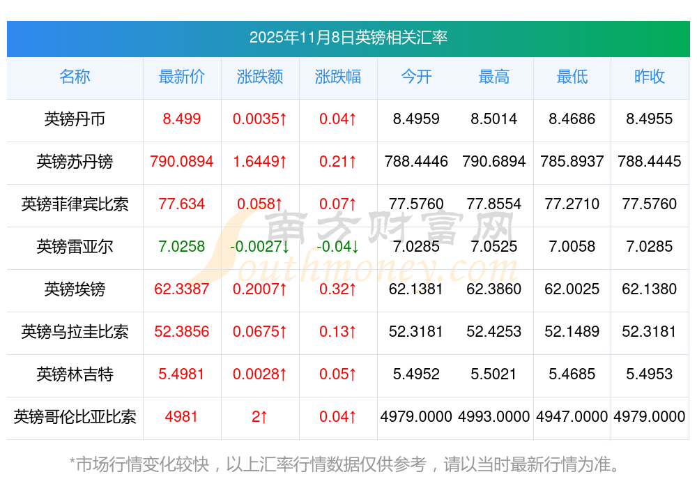 根據(jù)2025年11月8日匯率計(jì)算,GBP兌換TWD匯率最新價(jià)40.763100: