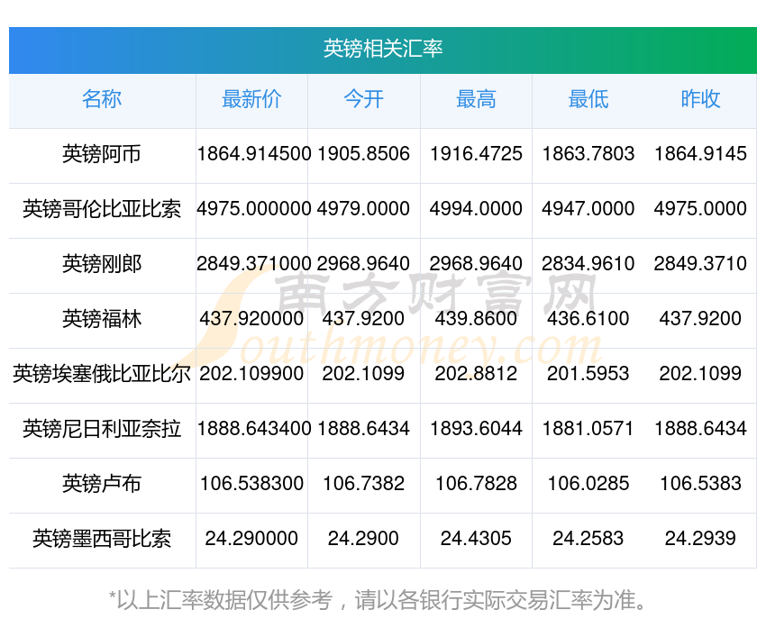 2025年11月8日英鎊相關(guān)匯率查詢