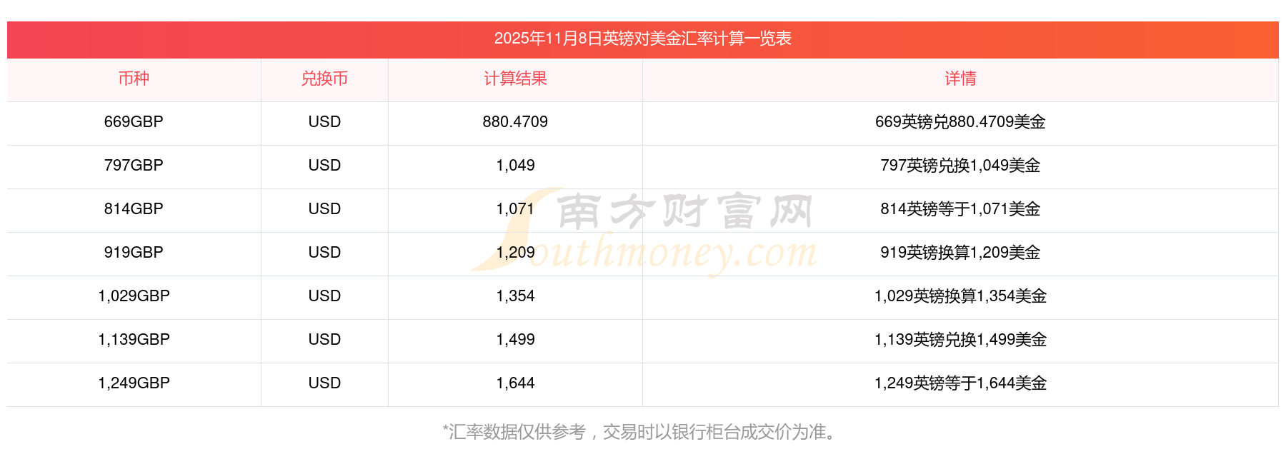 現(xiàn)在1英鎊與美元的匯率是多少?2025/11/8