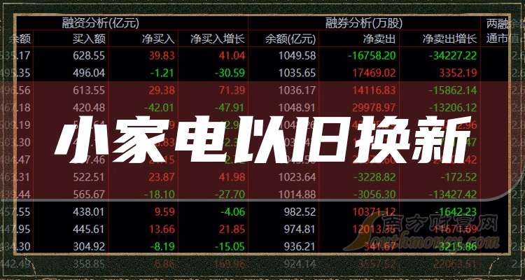 小家電以舊換新龍頭題材有哪些?據(jù)南方財富網(wǎng)概念查詢工具數(shù)據(jù)顯示,小家電以舊換新龍頭題材有: