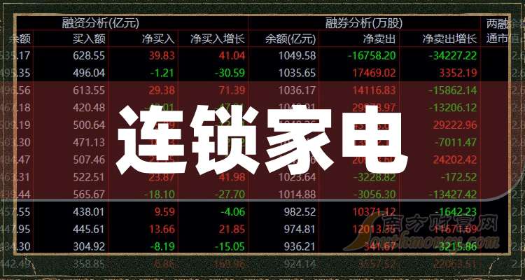 2025年連鎖家電概念有哪些?據(jù)南方財(cái)富網(wǎng)概念查詢工具數(shù)據(jù)顯示,連鎖家電概念龍頭有: