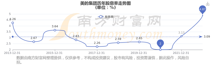 近年美的集團(tuán)年度股息率走勢(shì)如下圖: