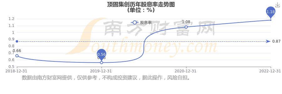 近年頂固集創(chuàng)年度股息率走勢如下圖: