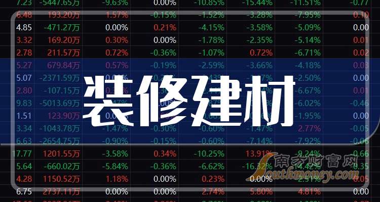 據(jù)南方財富網(wǎng)概念查詢工具數(shù)據(jù)顯示,裝修建材股票龍頭股有: