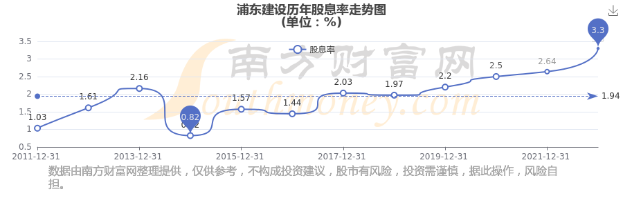 近年浦東建設(shè)年度股息率走勢如下圖: