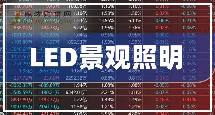 LED景觀照明龍頭有哪些?據(jù)南方財富網(wǎng)概念查詢工具數(shù)據(jù)顯示,LED景觀照明龍頭一覽: