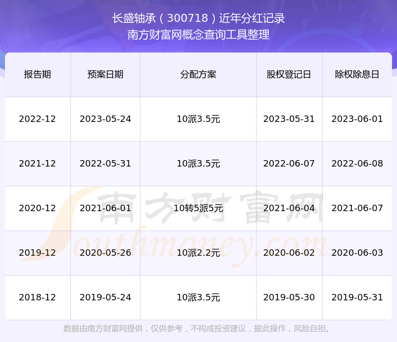 一、長(zhǎng)盛軸承(300718)股票分紅記錄