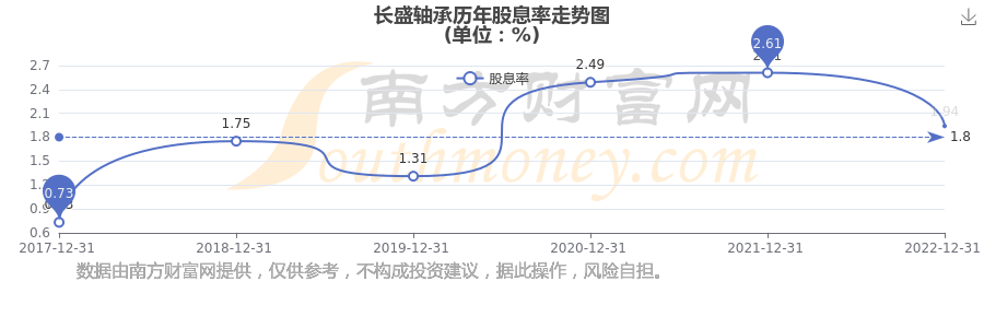 近年長(zhǎng)盛軸承年度股息率走勢(shì)如下圖: