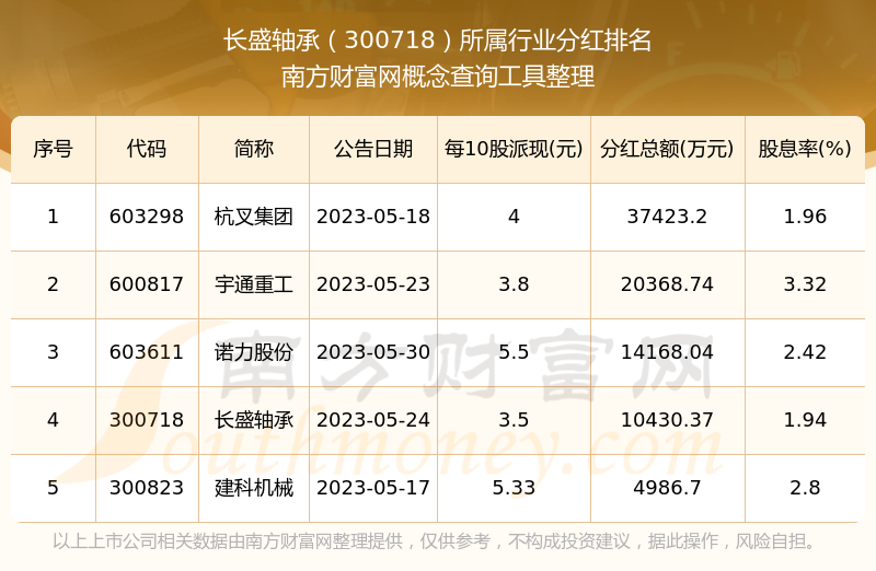 二、長(zhǎng)盛軸承300718行業(yè)分紅排名