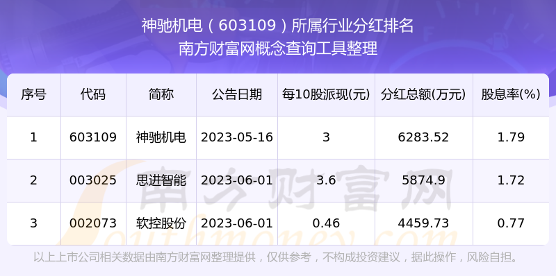 按照南方財富網趨勢選股系統(tǒng)統(tǒng)計,神馳機電所屬行業(yè)為機械設備行業(yè),機械設備行業(yè)分紅排名情況如下表: