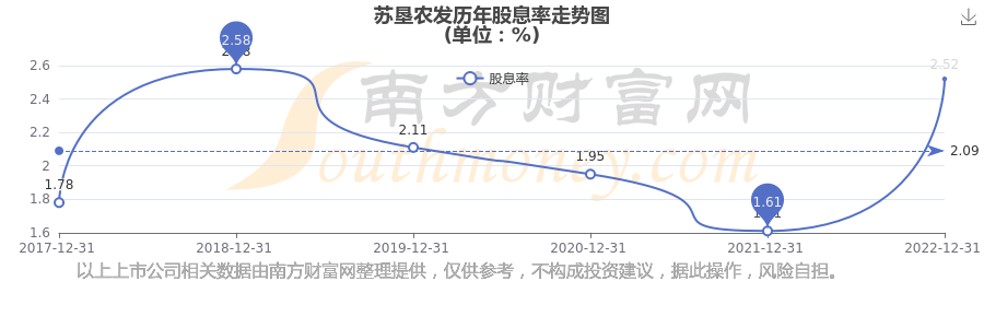 蘇墾農(nóng)發(fā)歷年股息率走勢(shì)如下圖: