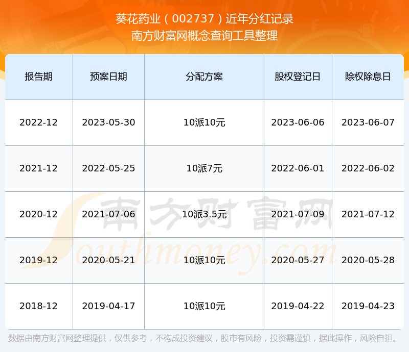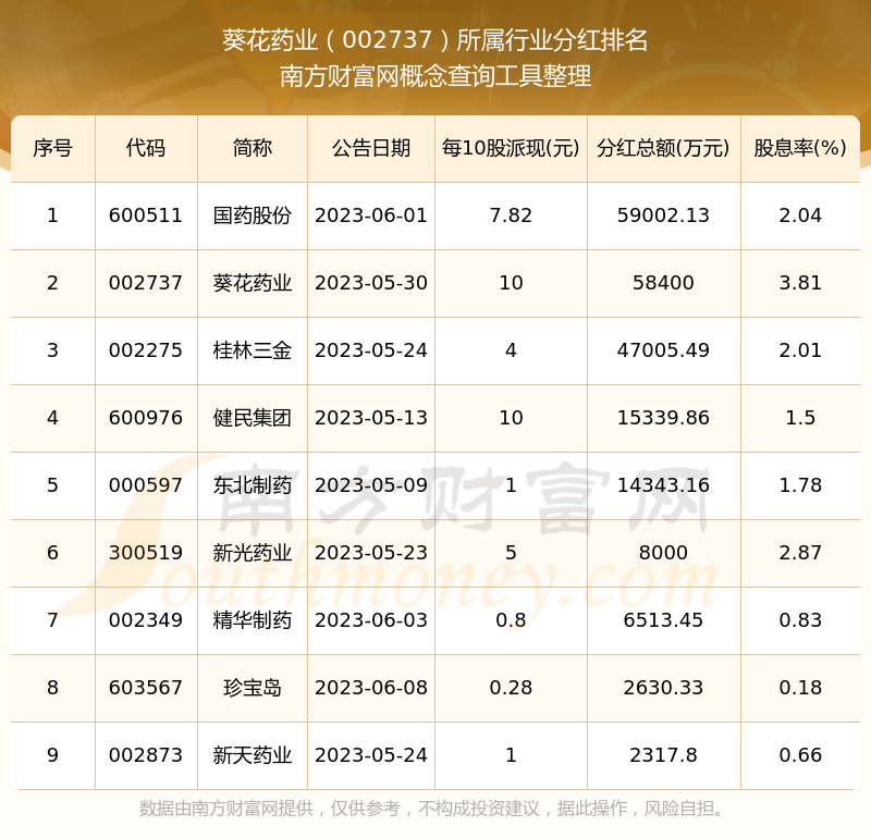 二、葵花藥業(yè)002737行業(yè)分紅排名