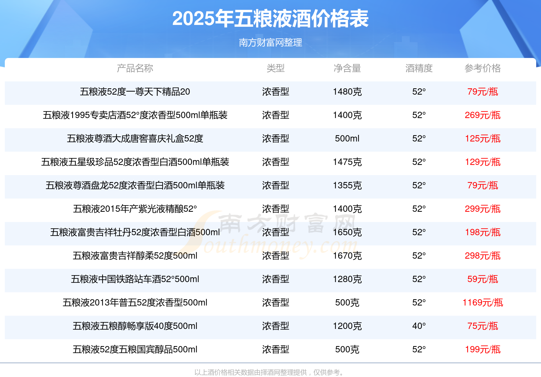 五糧液酒價(jià)格表查詢_2025五糧液酒價(jià)格表一覽