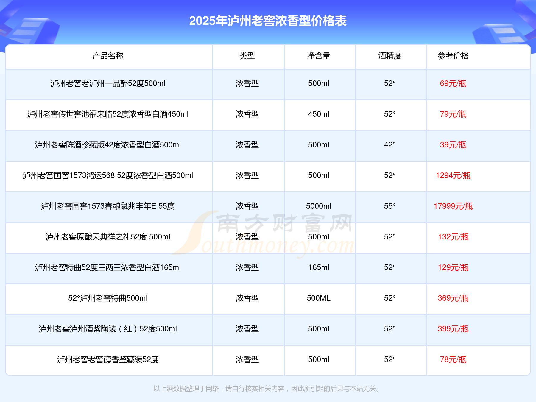 瀘州老窖濃香型酒價(jià)格表一覽2025(瀘州老窖濃香型酒價(jià)格表)