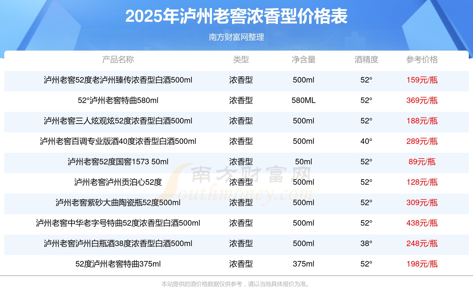 瀘州老窖國窖1573春釀鼠兆豐年E 55度參考價17999元/瓶、瀘州老窖國窖1573生命中的那壇酒55度014參考價9999元/瓶、瀘州老窖國窖1573春釀鼠兆豐年A 55度參考價5088元/瓶、瀘州老窖國窖1573生命中的那壇酒55度013濃香型白酒1000ml參考價4988元/瓶、瀘州老窖國窖1573生命中的那壇酒55度009 1000ml參考價4288元/瓶。