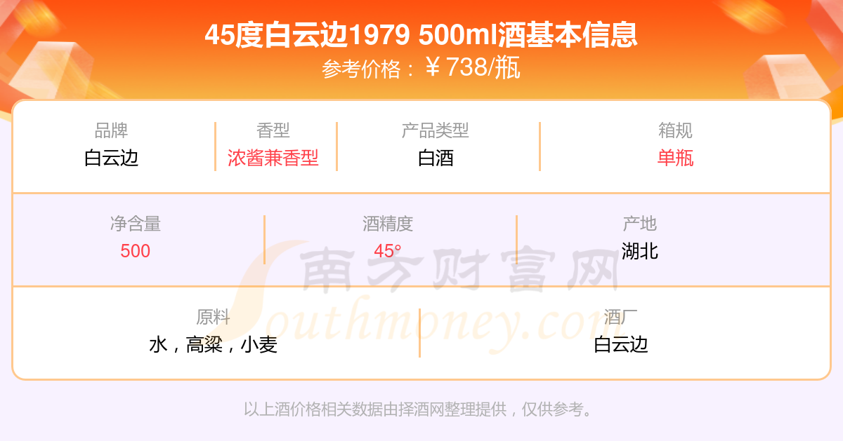 45度白云邊1979 500ml基本信息