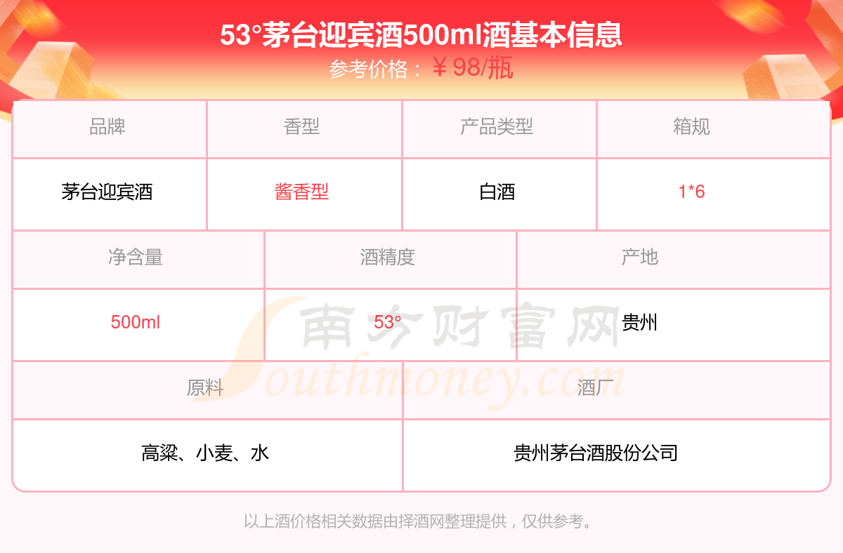 53°茅臺(tái)迎賓酒500ml基本信息