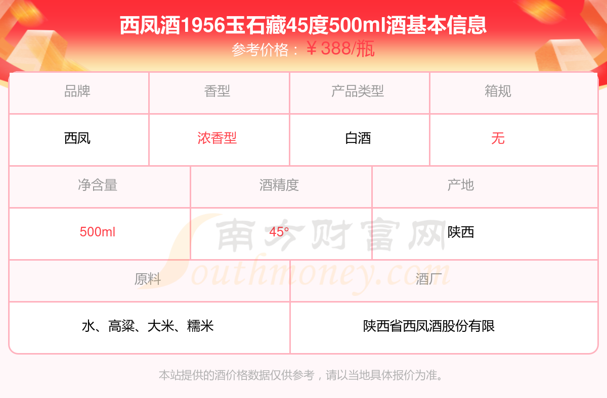西鳳酒1956玉石藏45度500ml基本信息