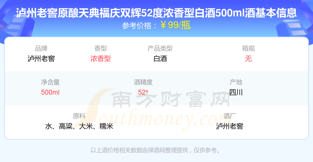 瀘州老窖原釀天典福慶雙輝52度濃香型白酒500ml基本信息