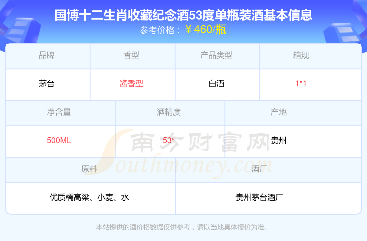 國博十二生肖收藏紀念酒53度單瓶裝基本信息