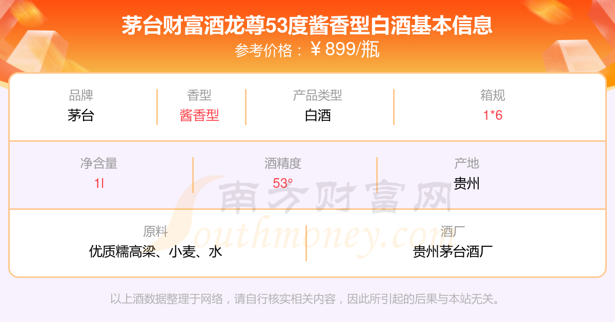 茅臺(tái)財(cái)富酒龍尊53度醬香型白酒基本信息