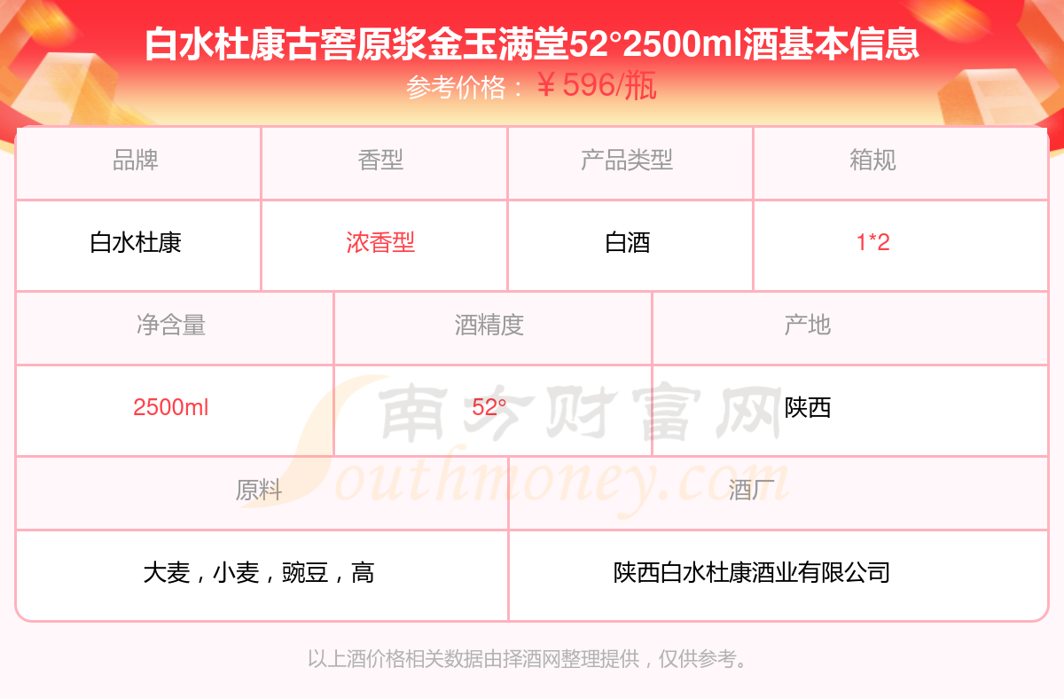 白水杜康古窖原漿金玉滿堂52°2500ml基本信息