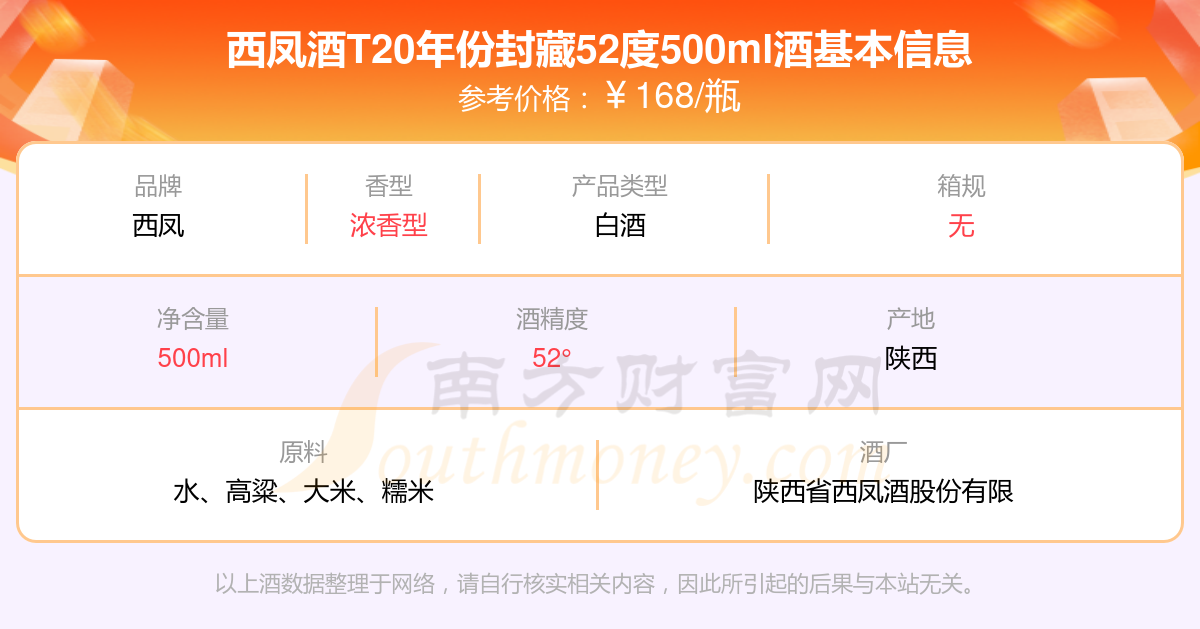 西鳳酒T20年份封藏52度500ml基本信息