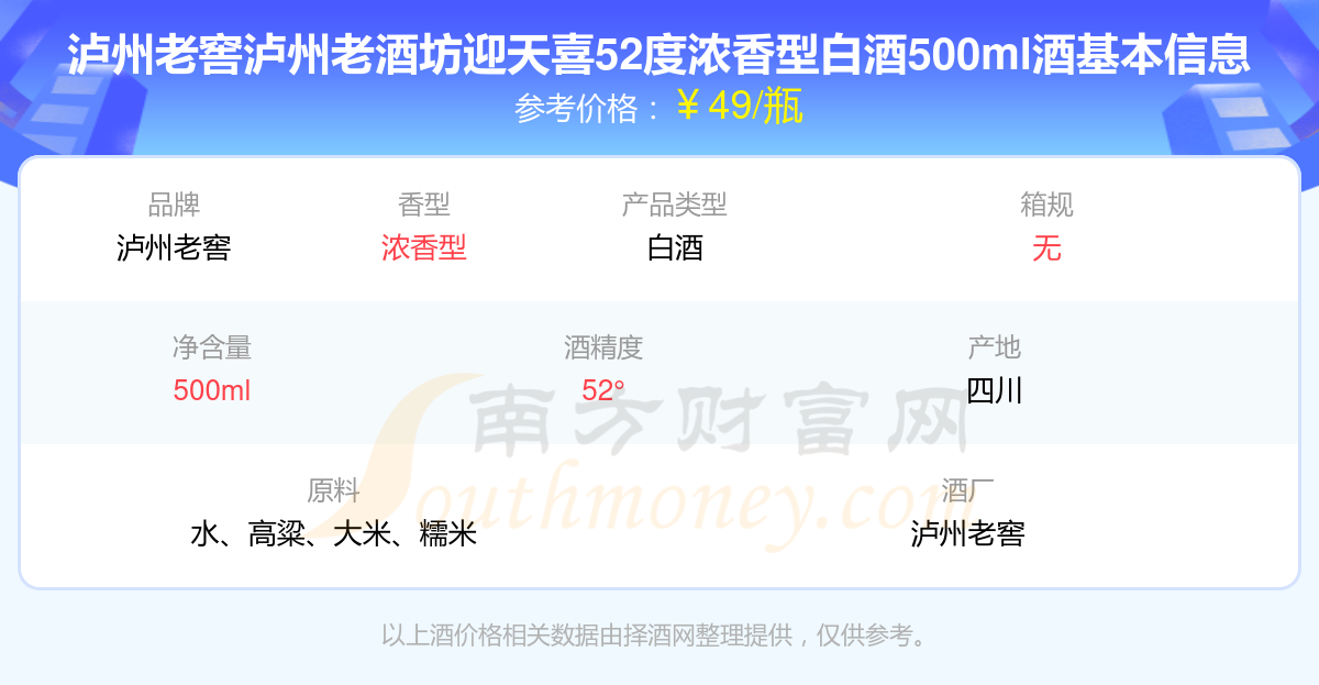 瀘州老窖瀘州老酒坊迎天喜52度濃香型白酒500ml基本信息