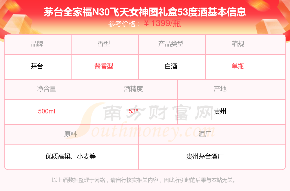 茅臺全家福N30飛天女神圖禮盒53度基本信息