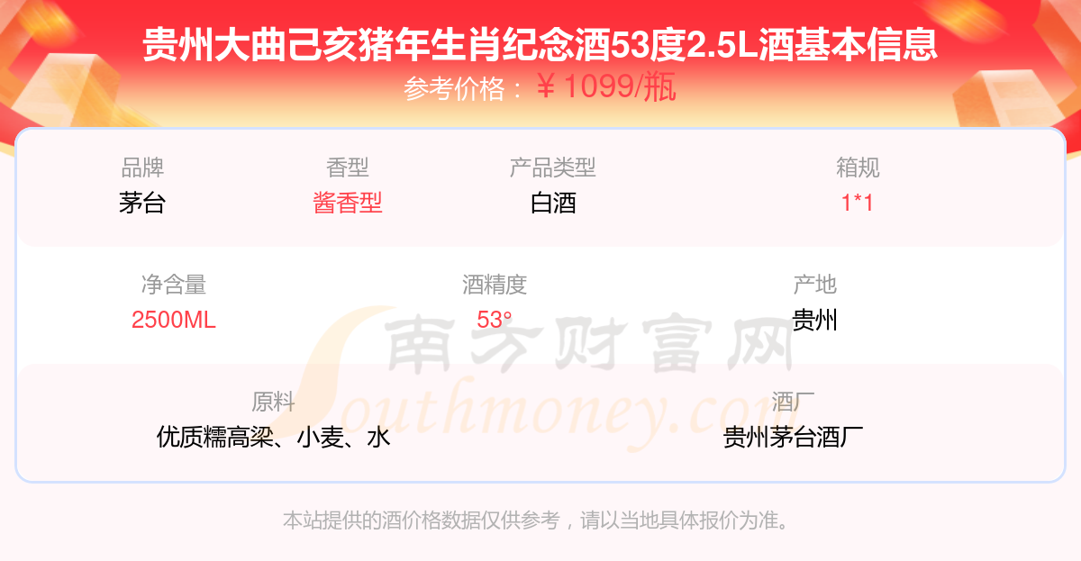 貴州大曲己亥豬年生肖紀(jì)念酒53度2.5L基本信息