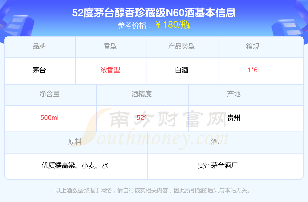 52度茅臺(tái)醇香珍藏級(jí)N60基本信息