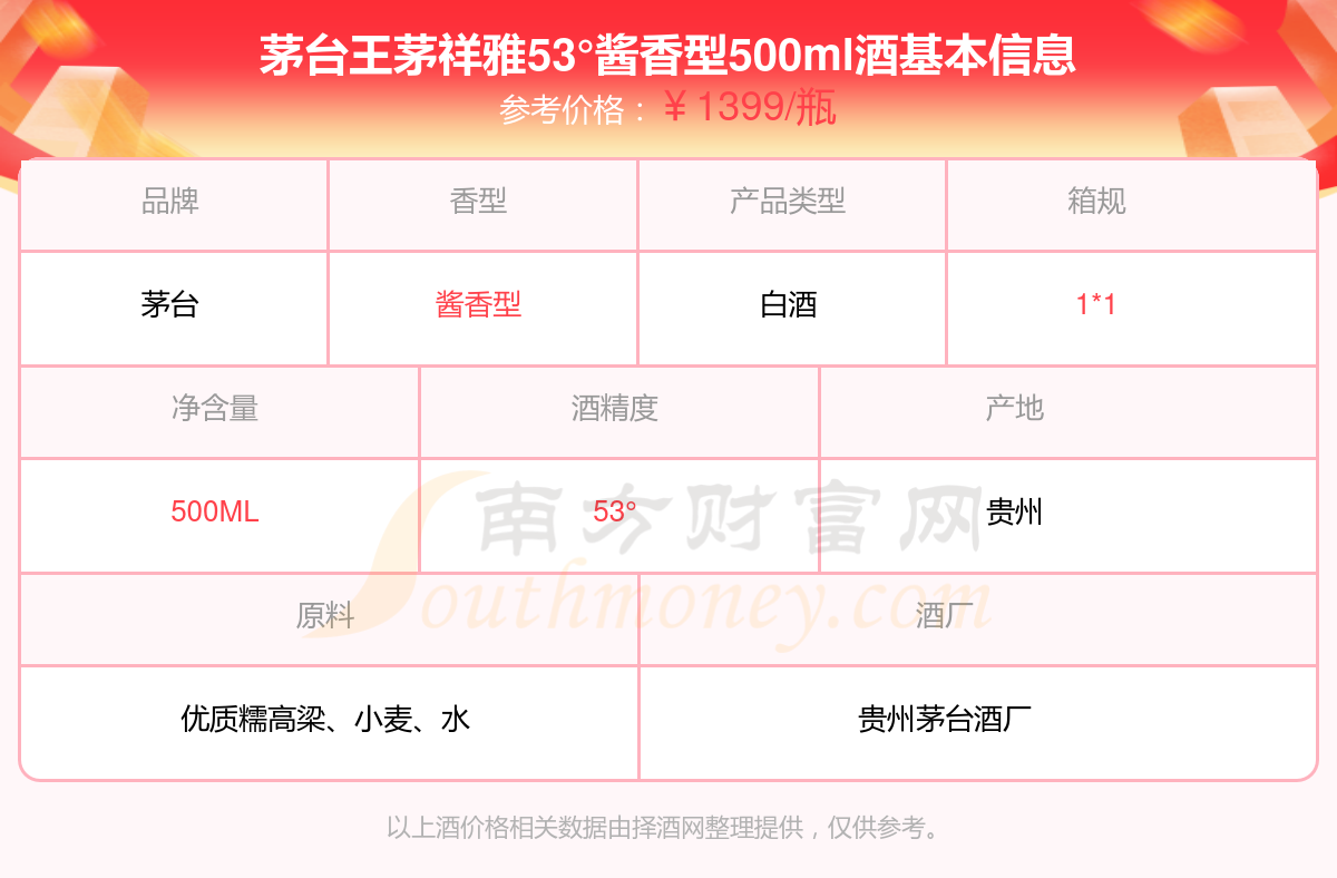 茅臺王茅祥雅53°醬香型500ml基本信息