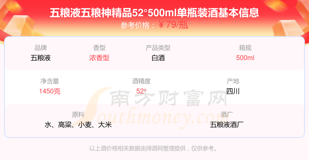 五糧液五糧神精品52°500ml單瓶裝基本信息