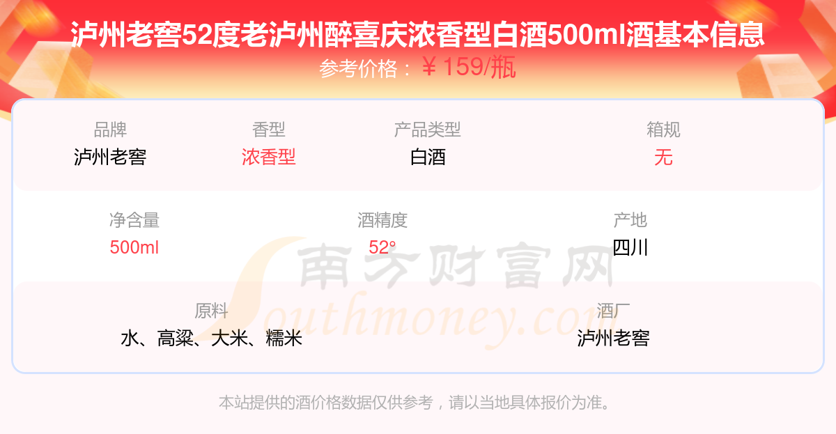 瀘州老窖52度老瀘州醉喜慶濃香型白酒500ml基本信息