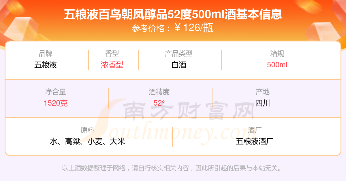 五糧液百鳥朝鳳醇品52度500ml基本信息