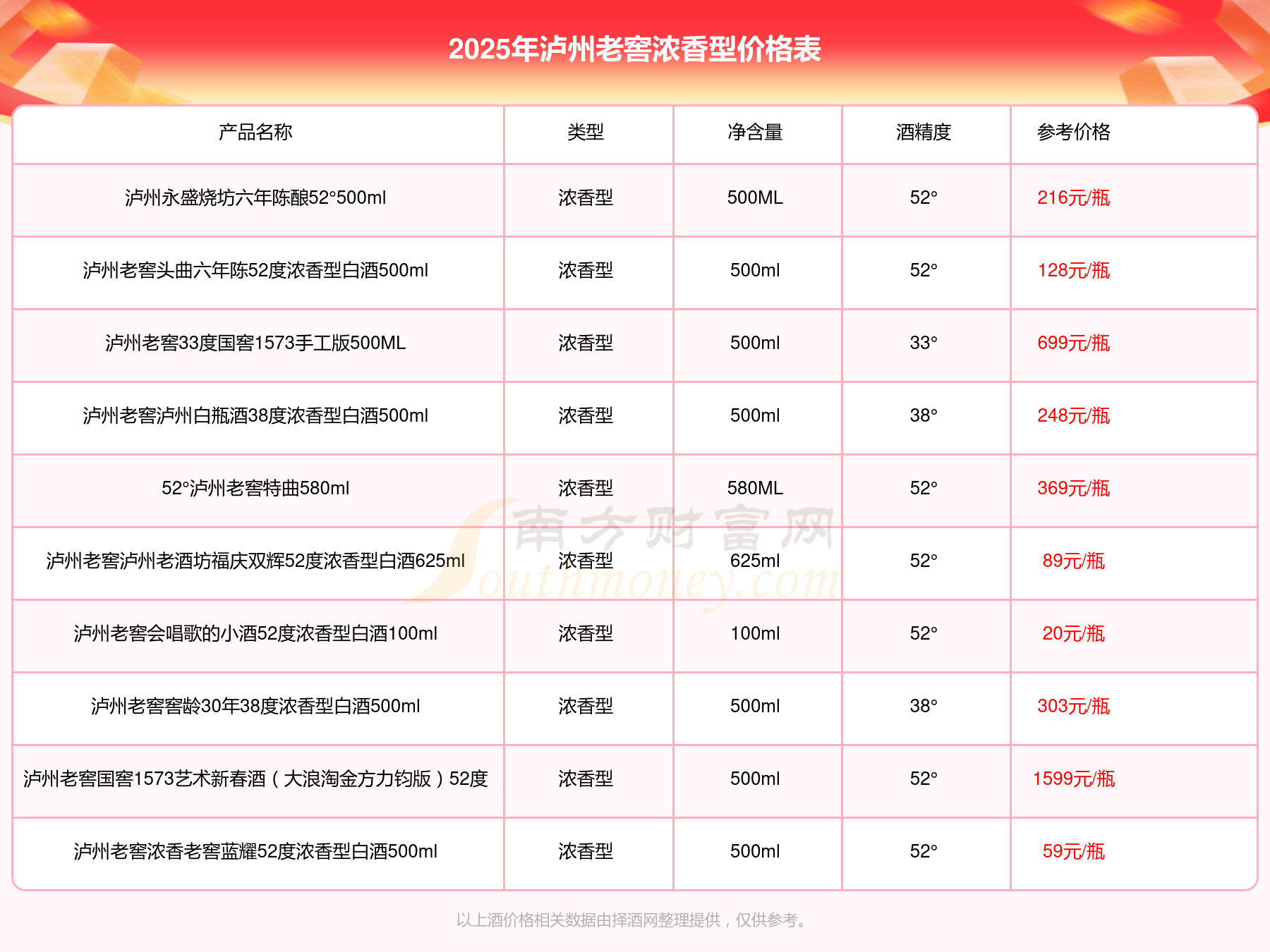 2025瀘州老窖濃香型酒最新價(jià)格: