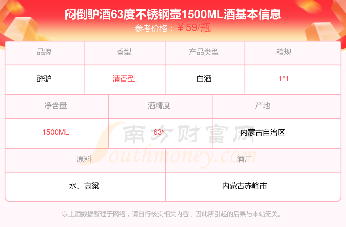 悶倒驢酒63度不銹鋼壺1500ML基本信息