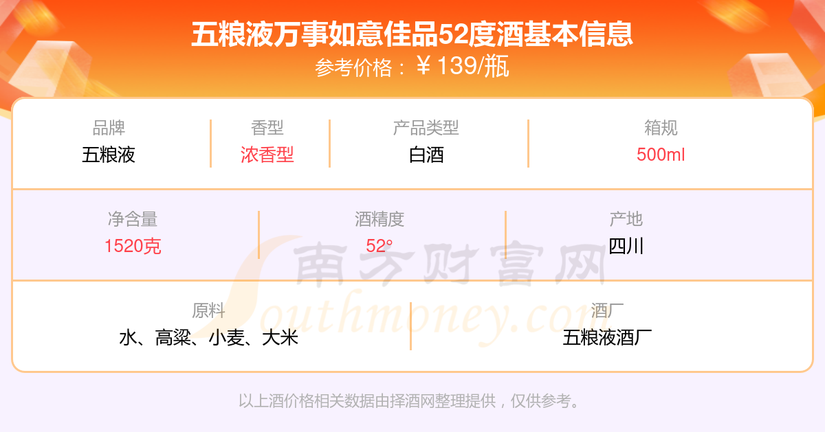 五糧液萬(wàn)事如意佳品52度基本信息
