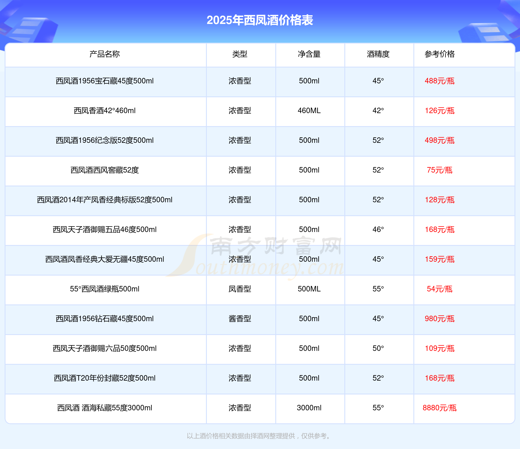 西鳳酒最新價格2025: